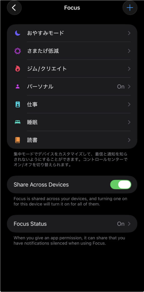仕事・運動・睡眠など、シーンごとに集中モードを使い分けている場合は、この設定だけでシンプルに自動切り替えが可能です。