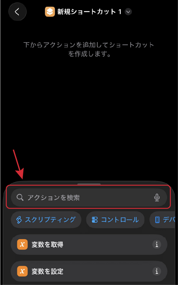 オートメーションではこのショートカットを呼び出して動かすため、まずは最初にショートカットを作成しておきましょう。