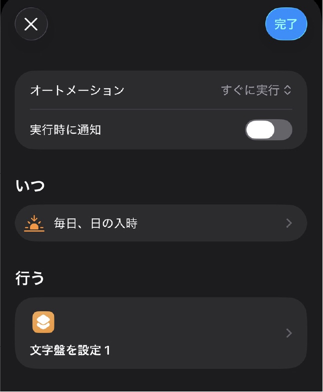 - オートメーションでショートカットを実行して文字盤を切り替える方法