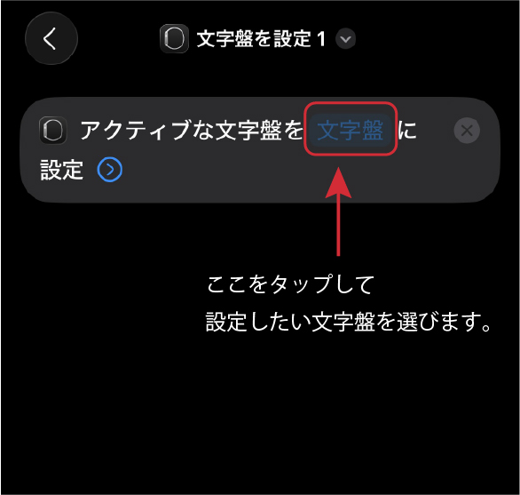 オートメーションから直接「文字盤を設定」アクションは追加できません。